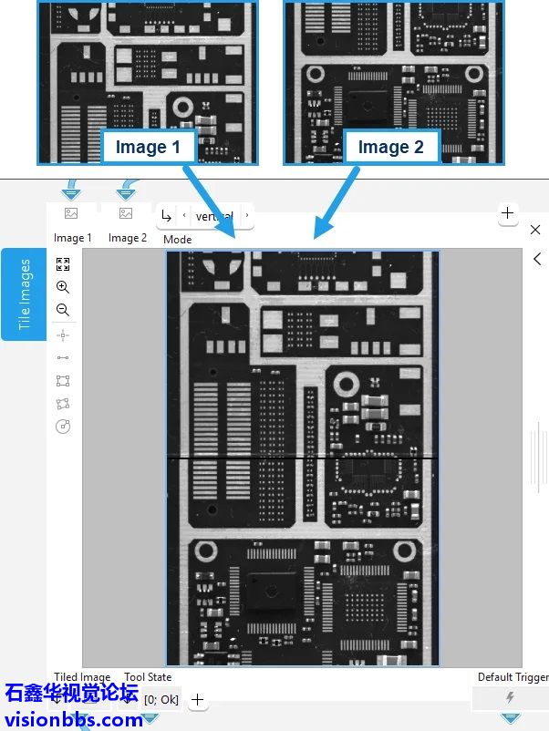 新概念工具“Tile Images”MERLIC 26.03 引入了新的概念工具 “Tile Images”。该工具可将两张具有相同通道数的图像拼接为一张合成图像,支持水平或垂直拼接。通过多次应用该工具,用户可以逐步创建更大的图像组合。这有助于更清晰地组织图像数据,并支持后续处理流程的高效执行。结合图像采集序列功能,来自线扫相机或面阵相机采集的图像可以拼接成一幅连续的整体图像。作为概念工具,“Tile Images”目前仍处于早期开发阶段。MVTec 欢迎用户测试该功能,并提供反馈,以共同推动未来 MERLIC 版本的发展。